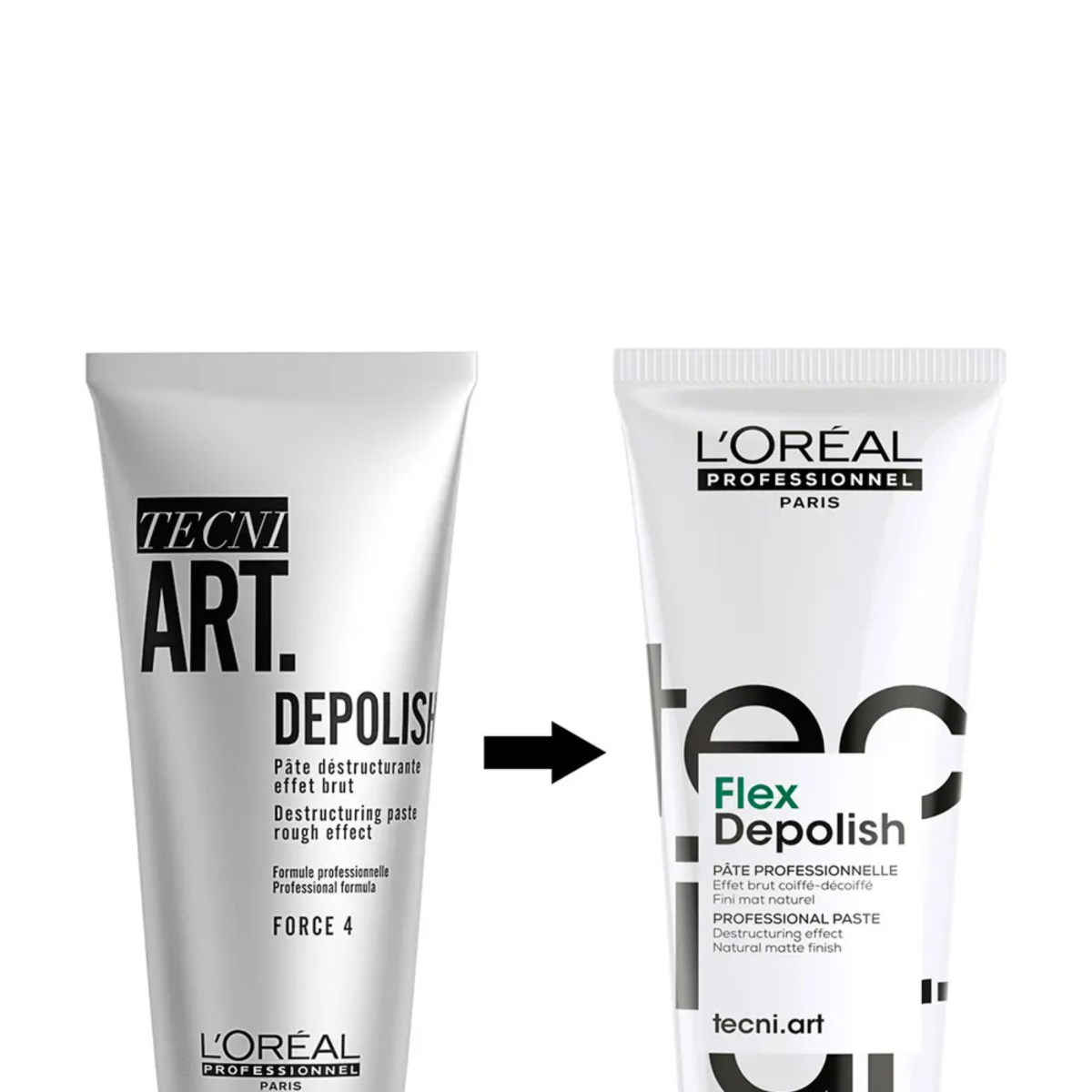 Depolish von Tecni.Art L’Oréal ist eine Stylingpaste, welche deine Haare glanzlos und matt hinterlässt. Die formbare Paste sorgt für den matten Stylingeffekt in den Haaren. Depolish gibt deinen Haaren einen rauen und unbearbeiteten Look, welcher sich nach Lust und Laune beliebig umformen lässt. Das Ergebnis ist ein rauer Look, definierte Strähnen und ein natürliches Finish. Probiere den wilden und zerzausten out-of-bed-Look!