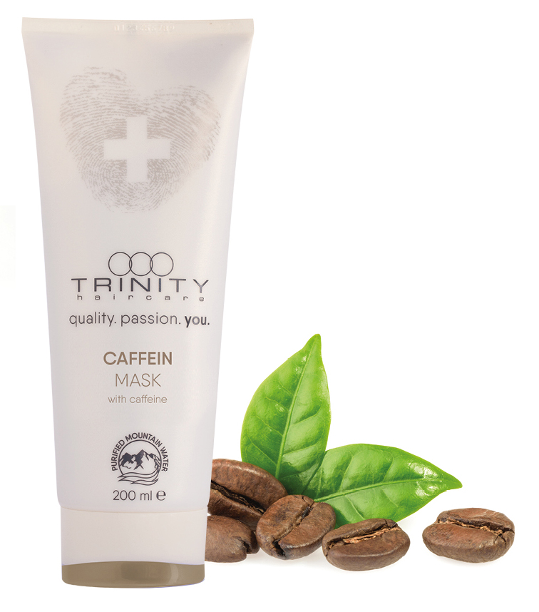 TRINITY Haircare Therapies Caffein Mask stimuliert und kräftigt die Haarwurzeln durch seinen Aktivkomplex aus Koffein und Provitamin B5. Gletscherwasser reguliert den Feuchtigkeitshaushalt von Kopfhaut und Haar.